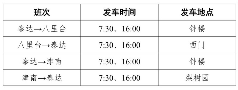泰達與八里臺、津南校區通勤班車1月10日至2月12日實行寒假運行方案,期間周六、周日,1月31日(除夕)至2月6日(正月初六)暫停運行,2月13日(周日)恢復正常工作日運行,具體安排如下: