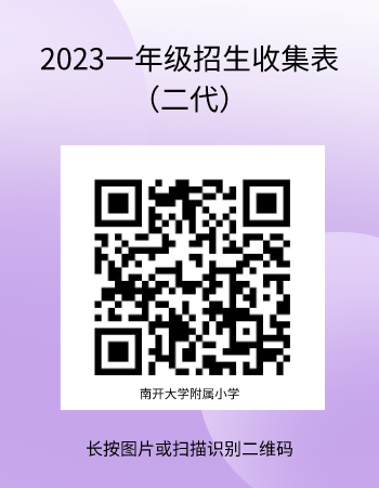 按照南開區教育局規定從即日起不再辦理六年級學生的插班工作。因此附小僅能接收當年南開大學各院(系)引進人才教職工子弟(二代)一至五年級的學生,并為其辦理插班手續。如有需要的家長,請您在8月18日前掃描下方二維碼進行登記填寫。